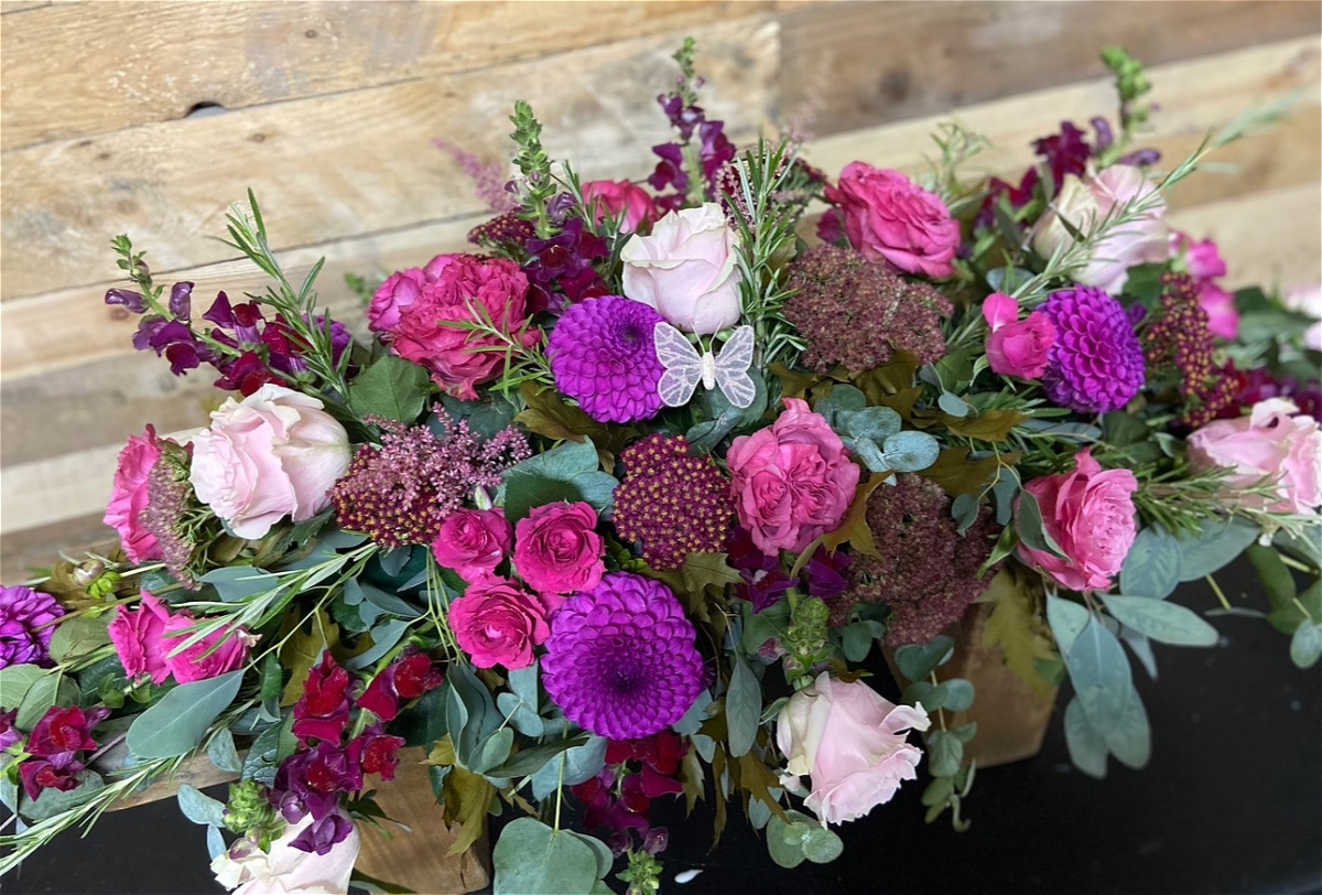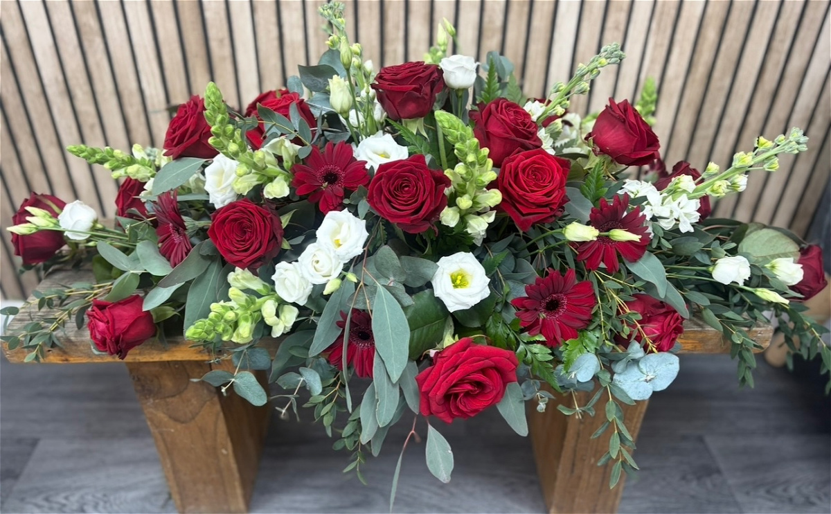 We create custom casket sprays that serve as a striking centerpiece for the service, symbolizing honor and remembrance. Choose from a variety of styles and colors to reflect the life being celebrated.