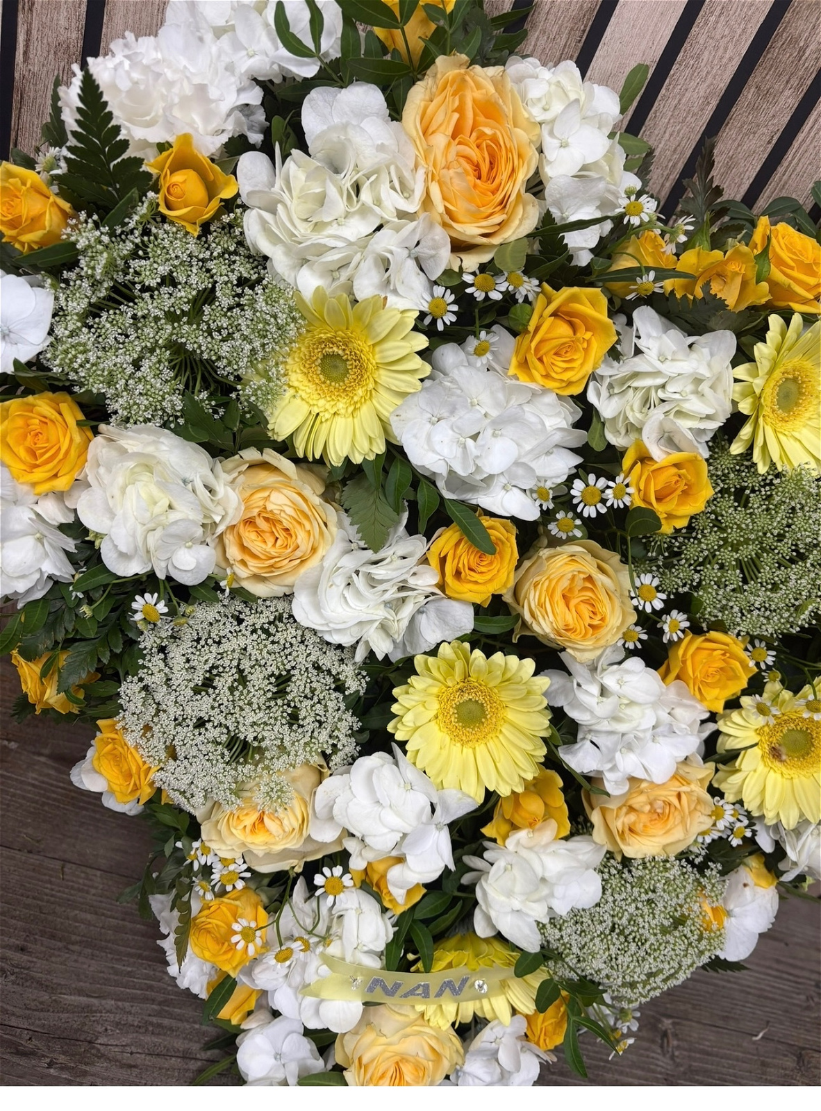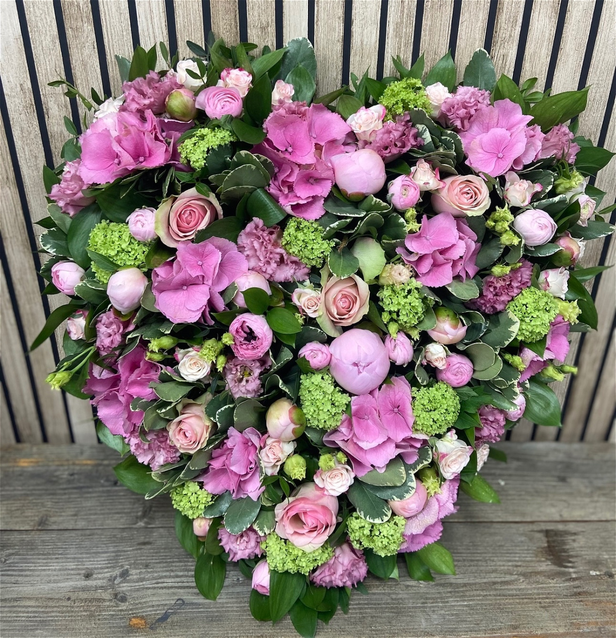 The Closed Loose Heart features an assortment of seasonal flowers in harmonious colours, lovingly designed as a beautiful expression of remembrance.