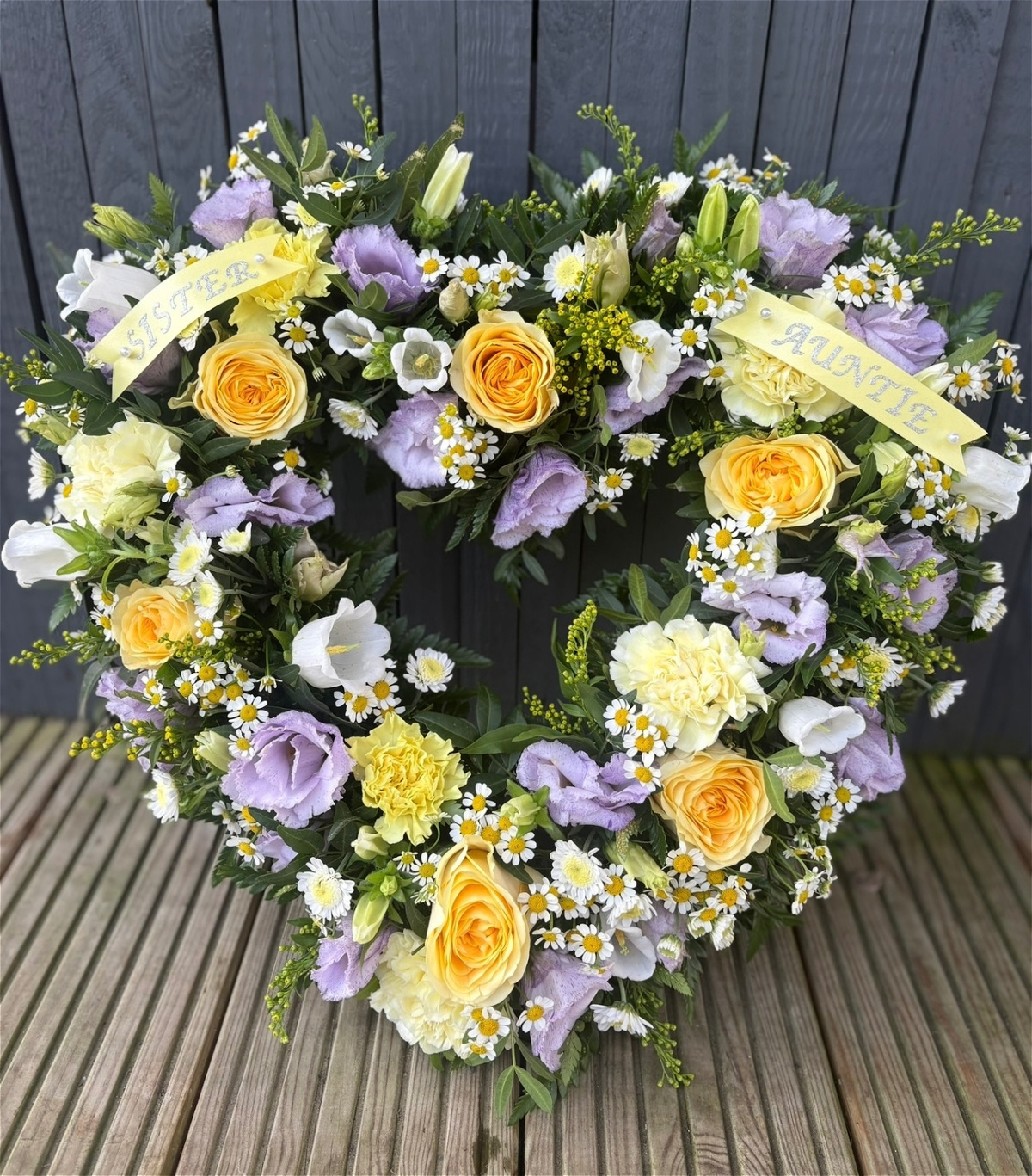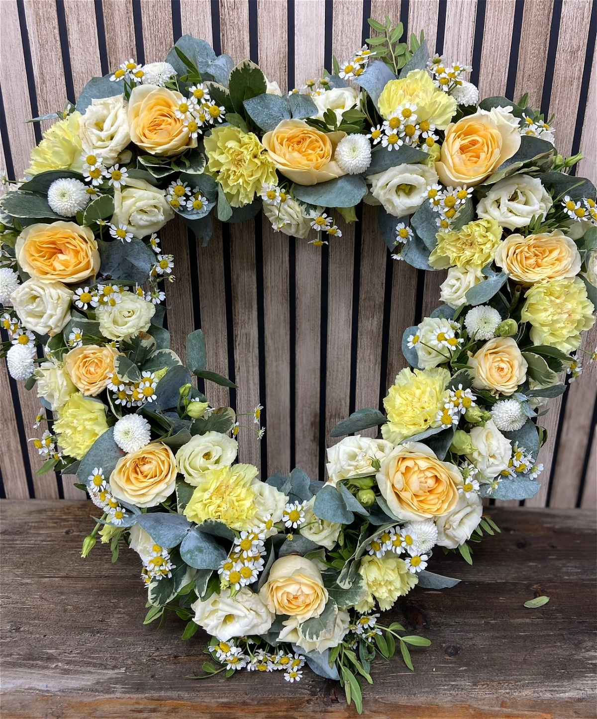 The beautiful open heart using a selection of seasonal Flowers with mixed foliages. In various colours